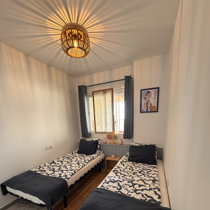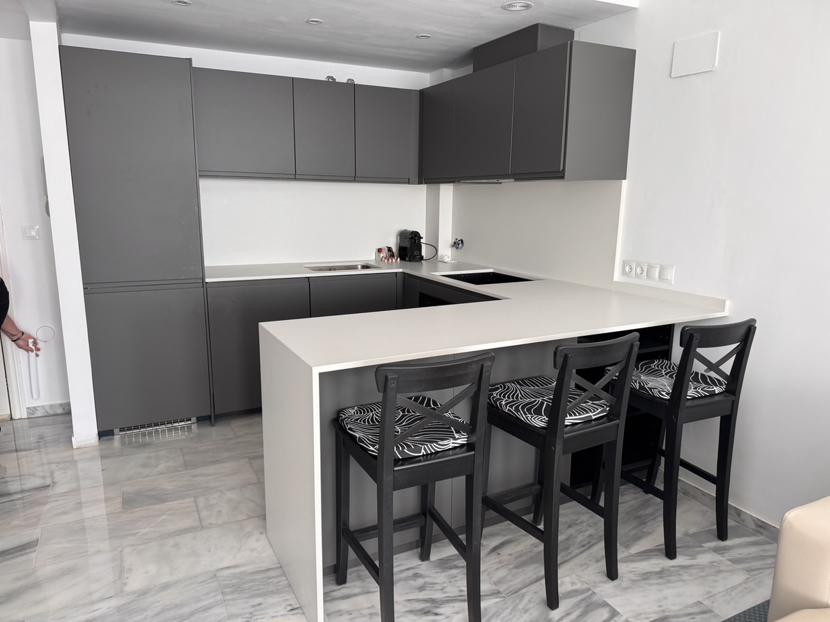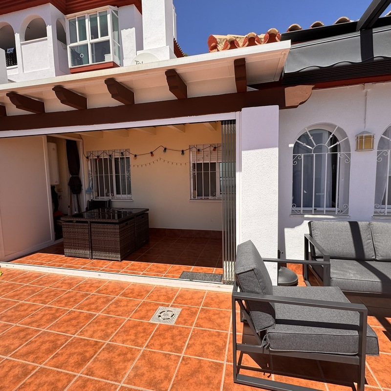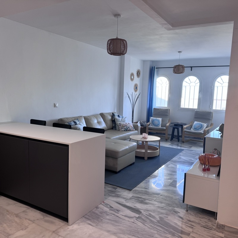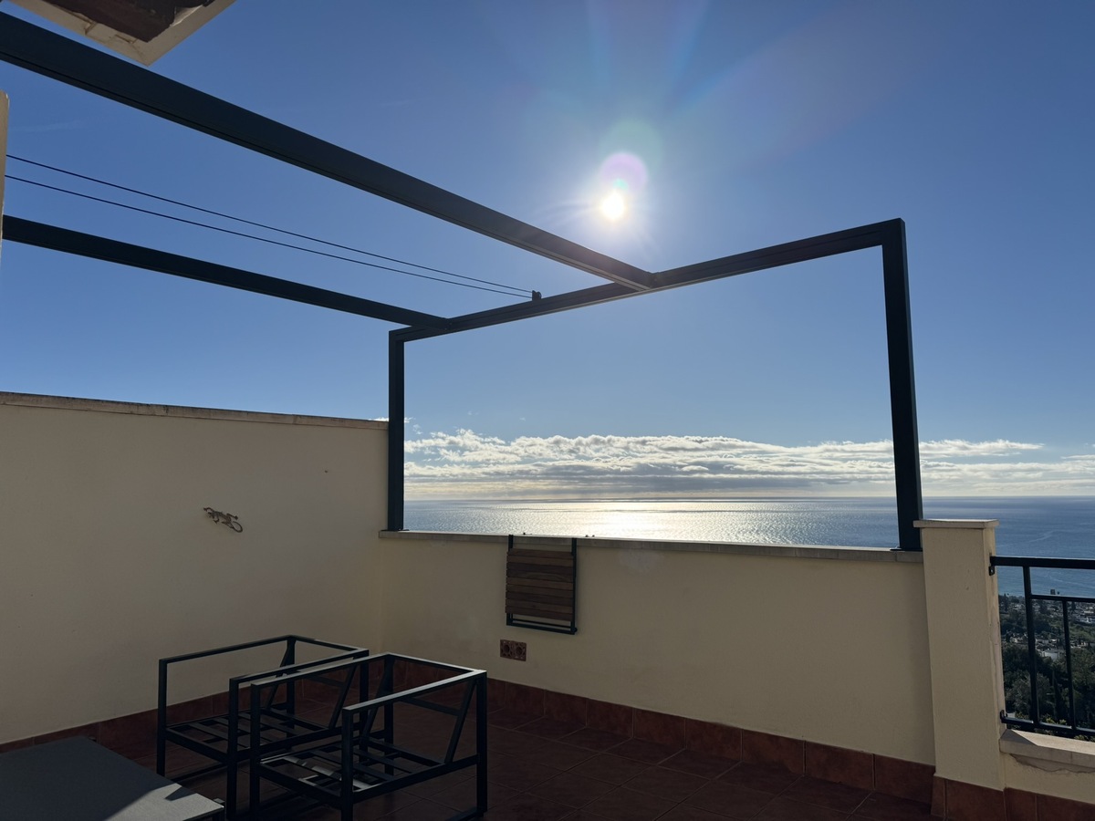Beautiful 2 bedroom, 2 bathroom flat in Benalbadena Pueblo with amazing views. The whole flat has been refurbished and is in great condition. Section on terrace with glass curtains for colder evenings. You can open one of them or the whole wall.