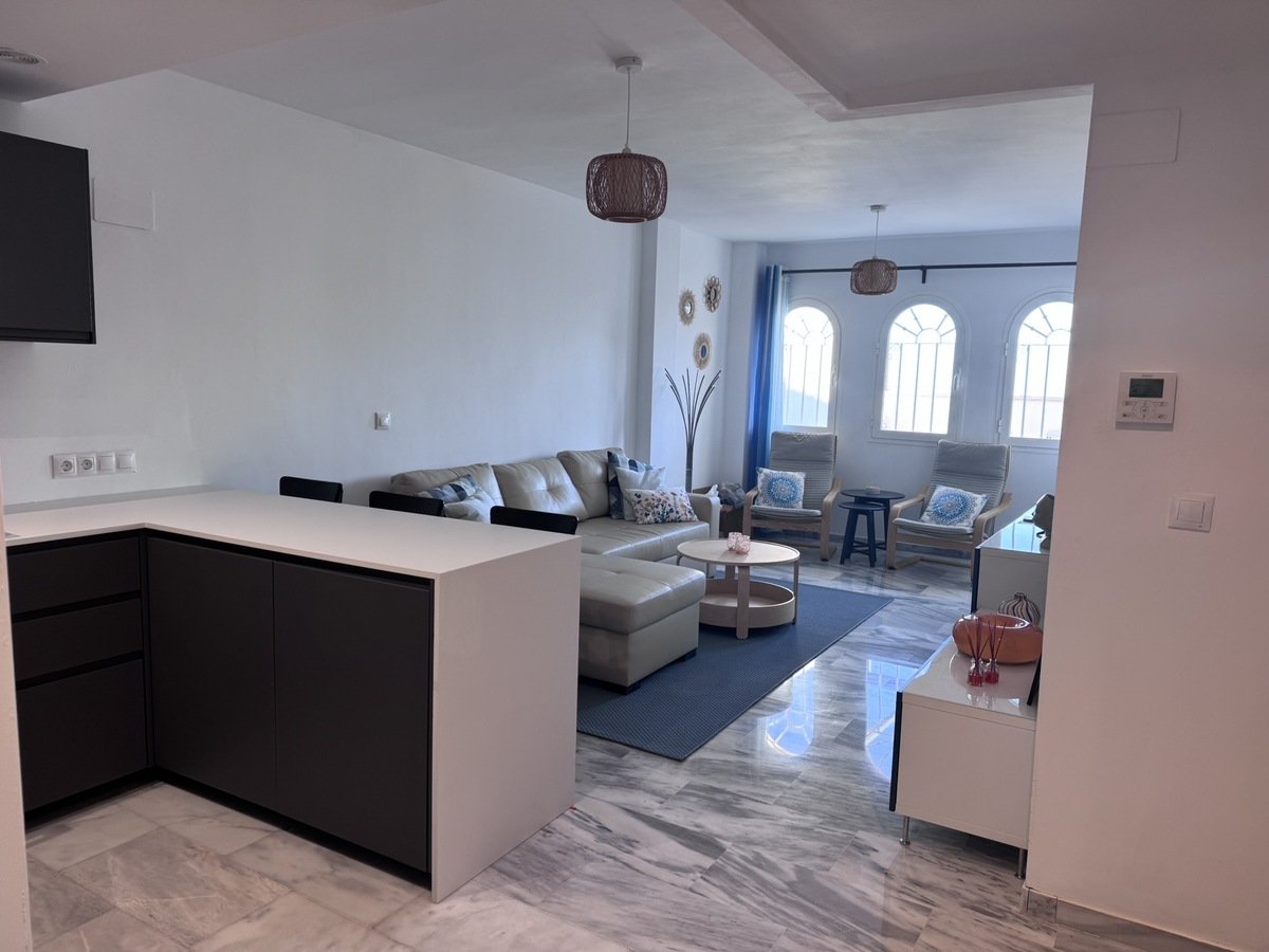 Beautiful 2 bedroom, 2 bathroom flat in Benalbadena Pueblo with amazing views. The whole flat has been refurbished and is in great condition. Section on terrace with glass curtains for colder evenings. You can open one of them or the whole wall.